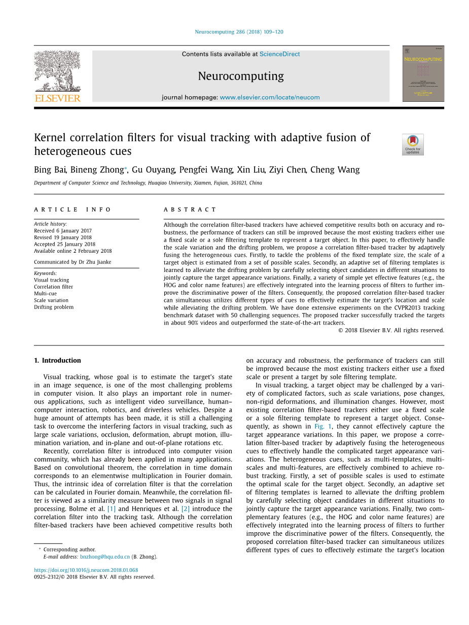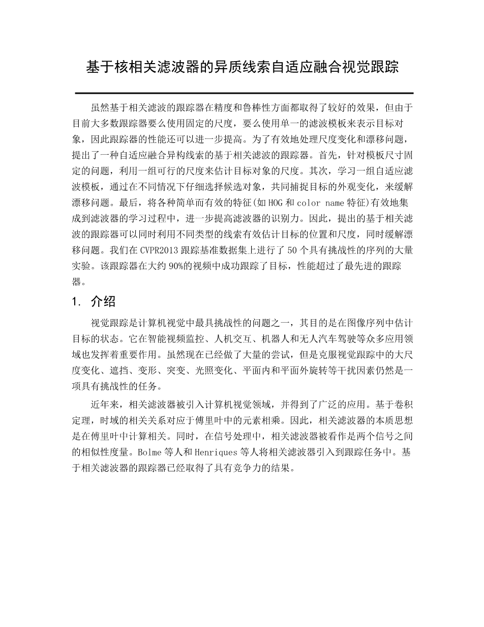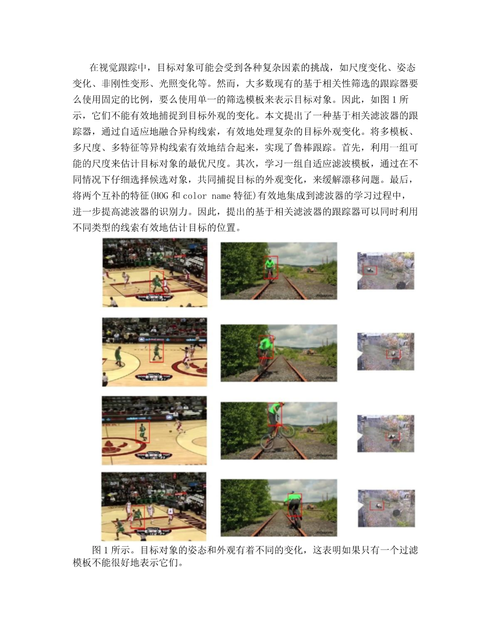 基于核相关滤波器的异质线索自适应融合视觉跟踪外文翻译资料 2021-11-05 21:45:43 英语原文共 12 页 英语原文共 17 页 原文和译文剩余内容已隐藏,您需要先支付 30元 才能查看原文和译文全部内容!立即支付 发小红书推广免费获取该资料资格。点击链接进入获取推广文案即可: Ai一键组稿 | 降AI率 | 降重复率 | 论文一键排版 PREVIOUS NEXT 您可能感兴趣的文章 基于项目的协同过滤推荐算法外文翻译资料 使用H-maxima和改进的Hough变换的道路检测外文翻译资料 学习马氏距离度量在数据聚类和分类中的应用外文翻译资料 基于单片机的智能电子密码锁外文翻译资料 Spring Web MVC框架用于快速开源J2EE应用开发:案例研究外文翻译资料 生成式对抗网络外文翻译资料 办公自动化系统外文翻译资料 图文人机对话界面的设计与实现外文翻译资料 Mole:可扩展的用户生成的WiFi定位引擎外文翻译资料 MVC模式与MVP模式的不同外文翻译资料