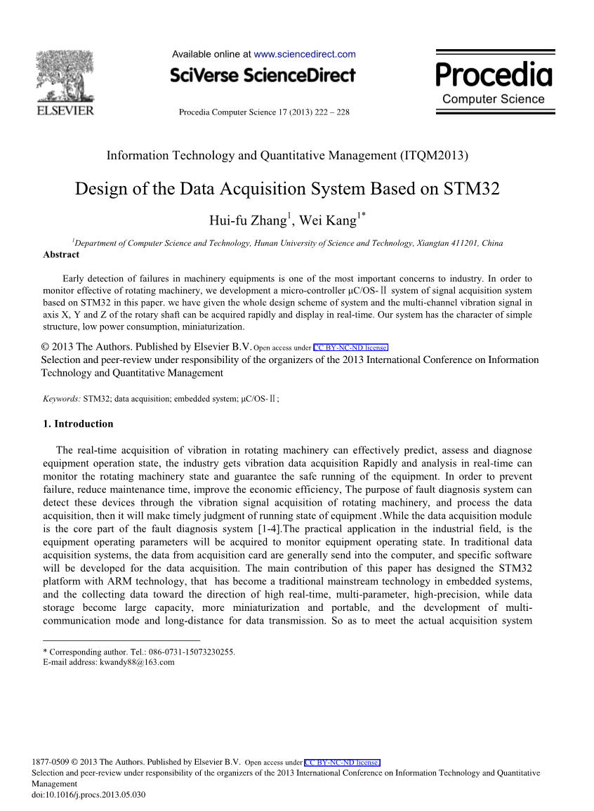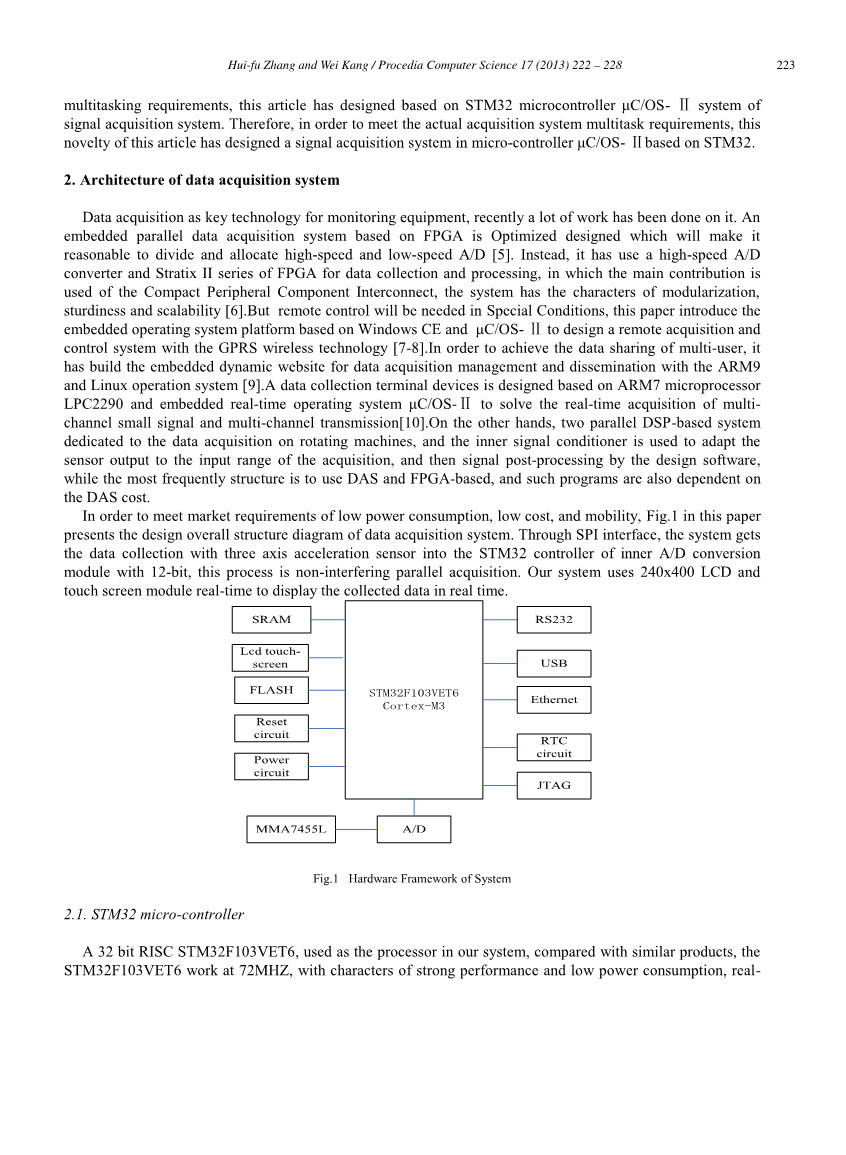 机械设备故障的早期检测是工业界最关心的问题之一。为了监测旋转机械的有效性,我们开发了 一个基于STM32微型信号采集系统。给出了系统的整体设计方案。利用多路振动信号 旋转轴的轴X、Y、Z可以快速获取并实时显示。我们的系统具有结构简单,低功耗,小型化的特点。