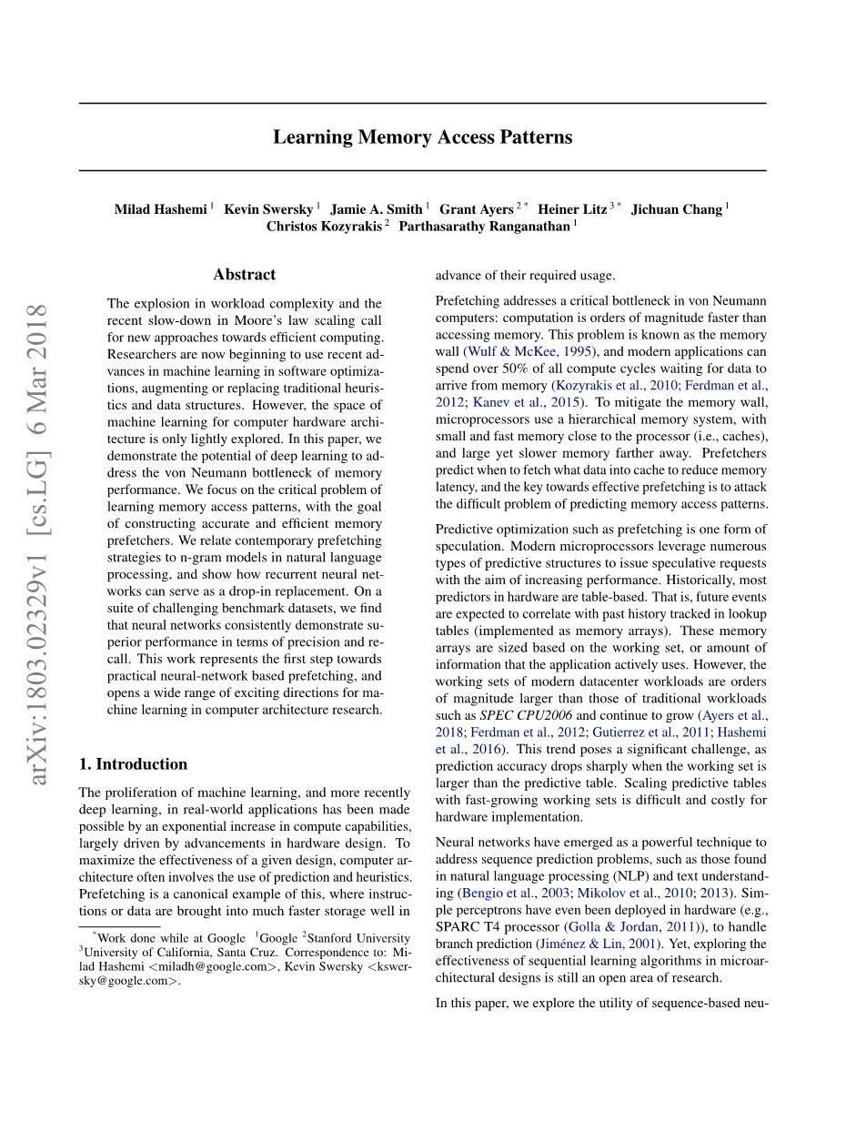 在现实世界的应用中,机器学习和最近的深度学习的激增是由于计算能力的指数增长,这主要是由硬件设计的进步所驱动的。为了最大限度地提高给定设计的有效性,计算机体系结构通常涉及到预取和启发式的使用。预取就是一个典型的例子,在这个例子中,指令或数据在其所需的使用之前就被带到了更快存储中。