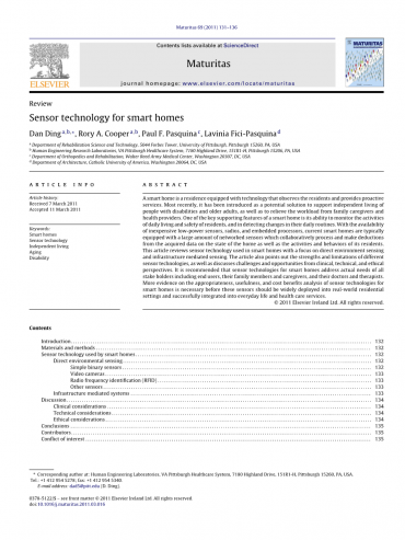 智能住宅是一个配备技术的,可以观察居民并提供主动服务的住宅。最近,它被引入作为支持独立生活的潜在解决方案残疾人和老年人,以及减轻家庭照顾者和工作人员的工作量保健提供者。智能家居的关键支持功能之一是其监控活动的能力居民的日常生活和安全,以及他们日常生活中的变化。随着可用性廉价的低功率传感器,无线电和嵌入式处理器,通常是当前的智能家居配备大量网络传感器,协同处理和扣除从获得的家庭状况数据以及居民的活动和行为。本文回顾了智能家居中使用的传感器技术,重点是直接环境感知和基础设施中介传感。文章还指出了不同的优势和局限传感器技术,以及临床,技术和道德方面的挑战和机遇观点。建议智能家居的传感器技术满足所有人的实际需求利益相关者包括最终用户,他们的家庭成员和看护人,以及他们的医生和治疗师。关于传感器技术的适当性,实用性和成本效益分析的更多证据在将这些传感器广泛部署到现实世界的住宅之前,智能家居是必要的设置并成功融入日常生活和医疗保健服务。