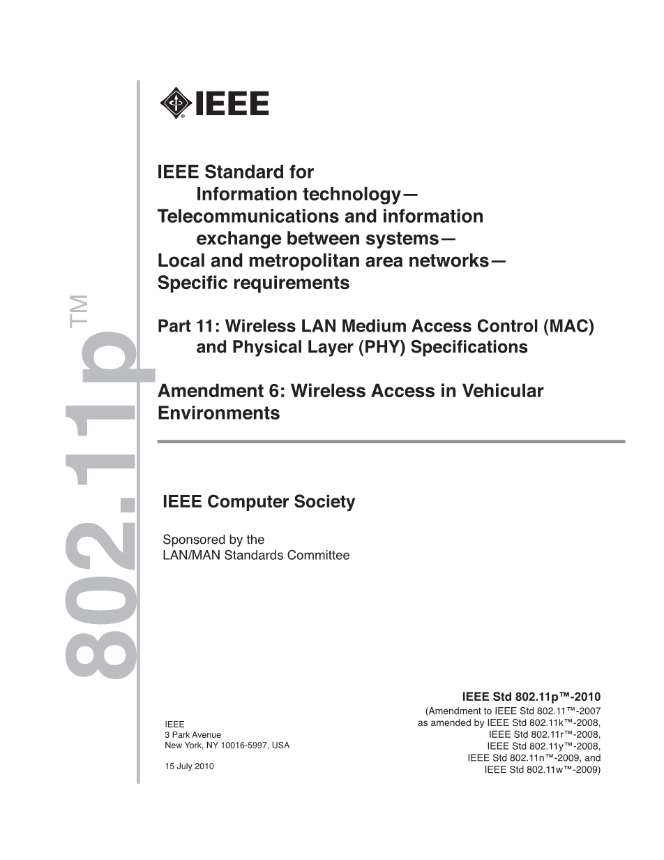 对IIEEEEstd 802.11-2007的这一修正是基于对移动环境中无线通信的广泛测试和分析的结果。这些努力的结果见astm e2213-03、道路和车辆系统之间的电信和信息交流标准规范----5.9ghz波段在车辆环境中的无线接入(wave)/专用短程通信(dsrc)介质接入控制(mac)和物理层(phy)规格a。