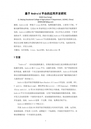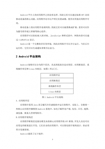 基于Android平台的应用开发研究外文翻译资料 2021-11-18 21:51:55 英语原文共 8 页 英语原文共 13 页 原文和译文剩余内容已隐藏,您需要先支付 30元 才能查看原文和译文全部内容!立即支付 发小红书推广免费获取该资料资格。点击链接进入获取推广文案即可: Ai一键组稿 | 降AI率 | 降重复率 | 论文一键排版 PREVIOUS NEXT 您可能感兴趣的文章 基于项目的协同过滤推荐算法外文翻译资料 使用H-maxima和改进的Hough变换的道路检测外文翻译资料 学习马氏距离度量在数据聚类和分类中的应用外文翻译资料 基于单片机的智能电子密码锁外文翻译资料 Spring Web MVC框架用于快速开源J2EE应用开发:案例研究外文翻译资料 生成式对抗网络外文翻译资料 办公自动化系统外文翻译资料 图文人机对话界面的设计与实现外文翻译资料 Mole:可扩展的用户生成的WiFi定位引擎外文翻译资料 MVC模式与MVP模式的不同外文翻译资料