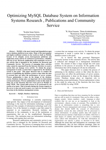 关于信息系统研究、出版和社区服务的MySQL数据库的优化