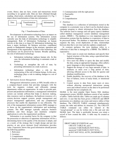 数据对接受者来说没有意义,但仍然需要被处理。数据要么是一种状态、图片、声音、文字、数字、数学、语言,或者是那些我们在观察周围环境是用来作为要素的特征。在一个信息系统中,数据的可用性非常重要。过程管理和数据存储需要一个能实现效率概念的设计。信息系统手机的数据将被用来获得信息。质量数据的生成需要一个优化的过程,具有较高的有效性。数据具有高度正确性并被加工成为一种被叫做信息的东西。因此通过信息,一个机构可以决定作出一个政策或决定。尽管条款数据和信息被不加选择地使用,特们却又不同的作用。数据是代表属性或事件的非随机特征。因此根据一个不成文的准则,数据就是事实、事件和事务存储。数据是通过阅读、观察、计算和分析得到的事实[1]。如图2.1。
