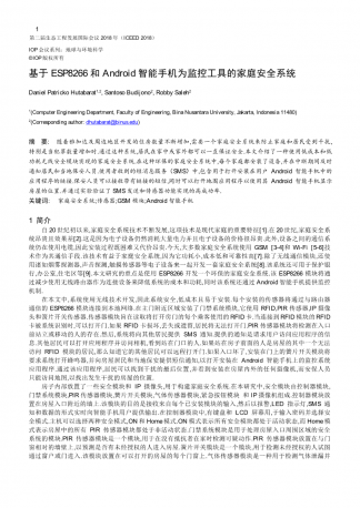 基于ESP8266芯片模组的小型WiFi智能物联控制系统设计与实现外文翻译资料 2021-11-23 22:37:41 英语原文共 11 页 英语原文共 9 页 原文和译文剩余内容已隐藏,您需要先支付 30元 才能查看原文和译文全部内容!立即支付 发小红书推广免费获取该资料资格。点击链接进入获取推广文案即可: Ai一键组稿 | 降AI率 | 降重复率 | 论文一键排版 PREVIOUS NEXT 您可能感兴趣的文章 基于项目的协同过滤推荐算法外文翻译资料 使用H-maxima和改进的Hough变换的道路检测外文翻译资料 学习马氏距离度量在数据聚类和分类中的应用外文翻译资料 基于单片机的智能电子密码锁外文翻译资料 Spring Web MVC框架用于快速开源J2EE应用开发:案例研究外文翻译资料 生成式对抗网络外文翻译资料 办公自动化系统外文翻译资料 图文人机对话界面的设计与实现外文翻译资料 Mole:可扩展的用户生成的WiFi定位引擎外文翻译资料 MVC模式与MVP模式的不同外文翻译资料