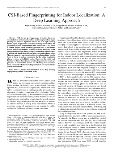 关键字:信道状态信息(CSI),深度学习,指纹识别,室内定位,WiFi。