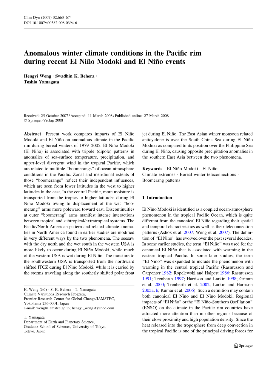 Hengyi Weng,Swadhin K.Behera,Toshio Yamagata