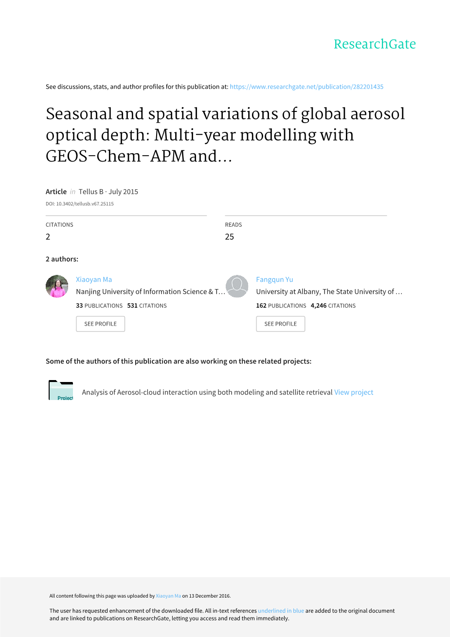 为了进行比较,使用简单的线性插值法将GEOS-Chem-APM模式结果内插到与MODIS()、MISR()、和SeaWiFS()相同的空间分辨率。选择最接近AERONET站点的网格单元用于模式和AERONET之间的比较。