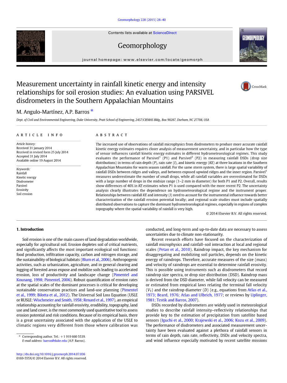 使用PARSIVEL激光雨滴谱仪来评估在阿巴拉契亚山脉南部:测量降水动能的不确定性和土壤侵蚀研究的关系。