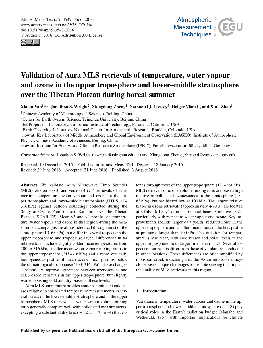 青藏高原夏季上对流层和中下平流层Aura微波探测仪反演温度、水汽和臭氧的验证外文翻译资料