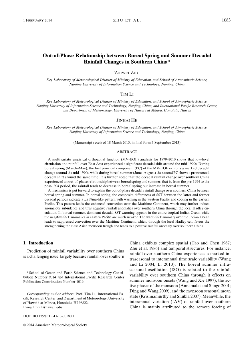 2,太平洋国际研究中心,气象系,夏威夷大学,檀香山,96822