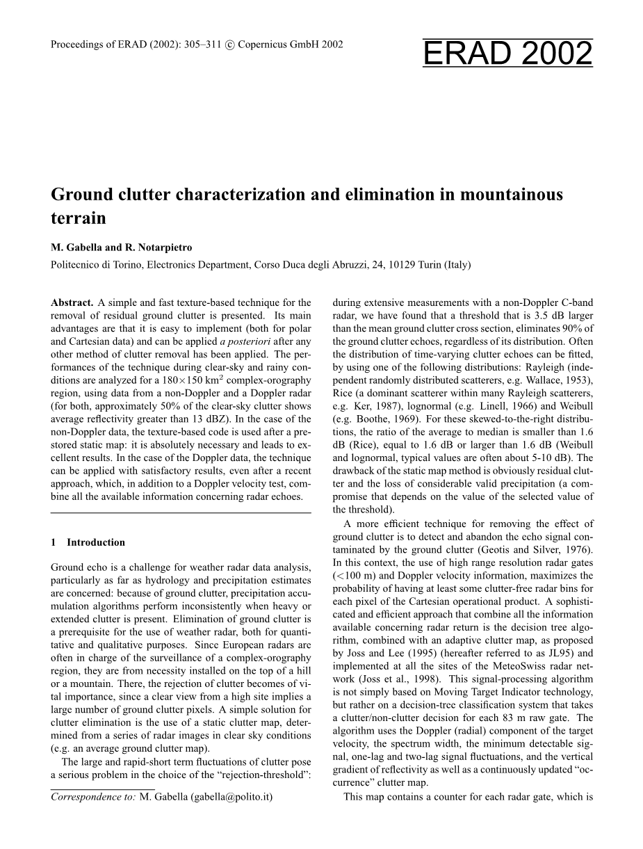 在Sect.2上提出的简单的基于纹理的消除算法,对残余地面杂波的抑制具有显著的效果。结构简便和较短的模拟时间在规划过程中是我们追求的主要目标:这两个目标是很容易实现的(无论是极性数据还是笛卡尔数据),而且在其他可使用杂波去除方法被运用后,可以将这种算法当作“后验”方法。在Sec.3上提出两个C波段雷达的数据可以被用来评估基于纹理的技术代码。Sect.4上描述了在两台非并置式控制的雷达建立的山地区域,尤其是180times;150平方公里的区域进行的专题研究。这种基于纹理的技术的表现在晴空(Sect.5)和降水(Sect.6)条件下,连同其他创新有效的杂波去除方法来进行分别的讨论。