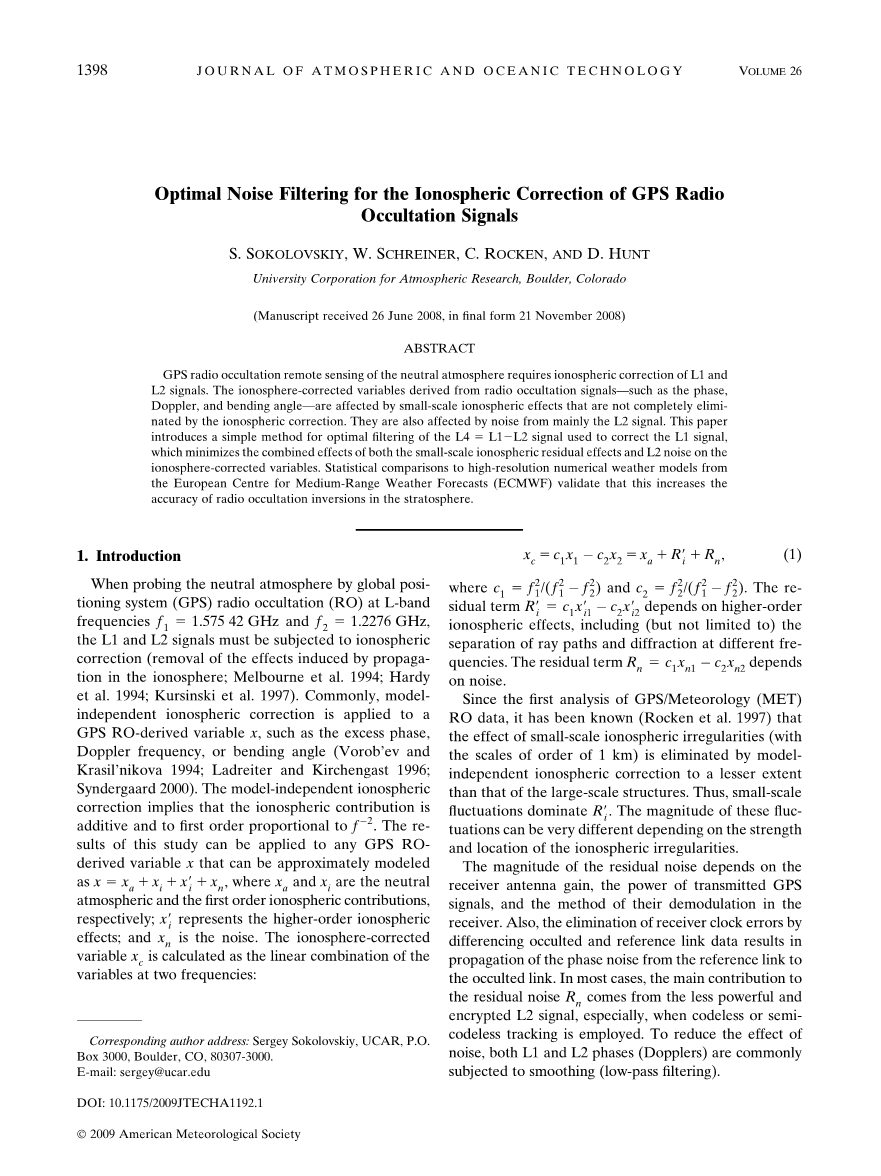 S. SOKOLOVSKIY, W. SCHREINER, C. ROCKEN, AND D. HUNT