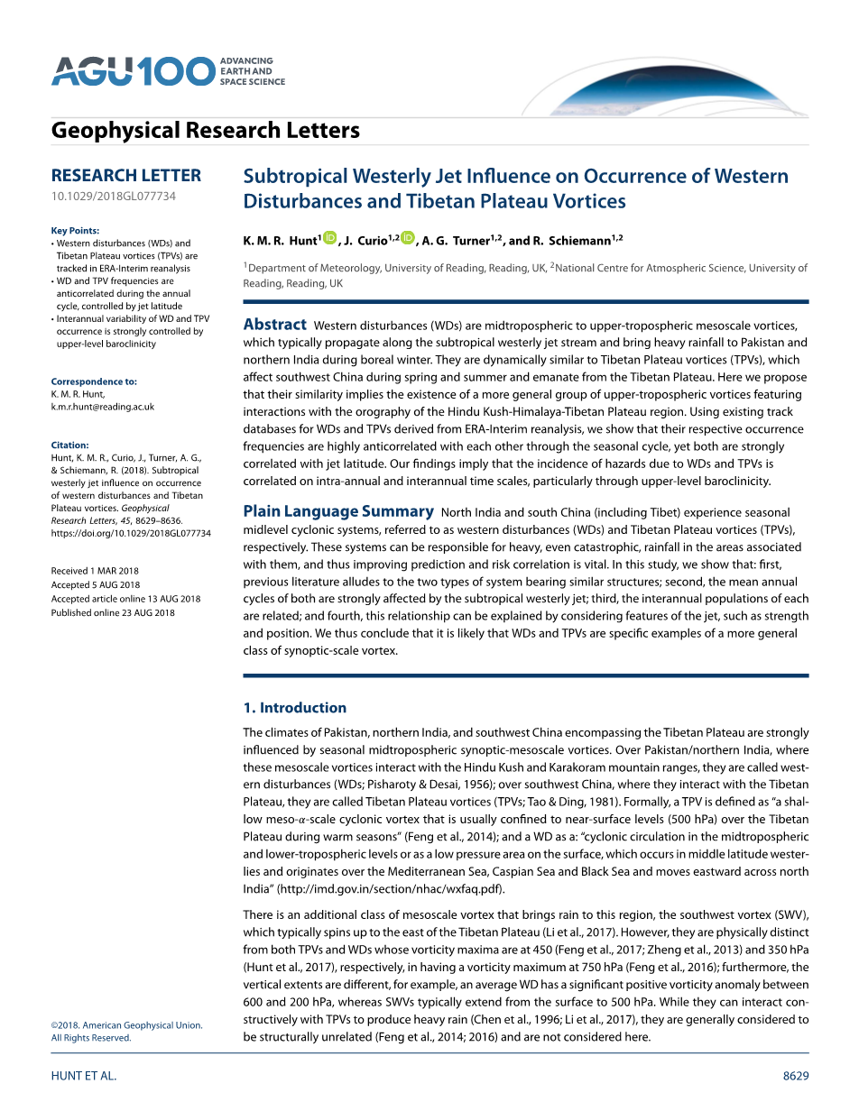 K.M.R. Hunt1 ,J. Curio1,2 ,A.G. Turner1,2,and R. Schiemann1,2