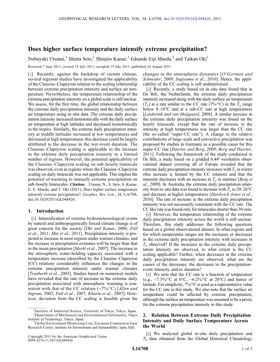 Nobuyuki Utsumi1,Shinta Seto1,Shinjiro Kanae2,Eduardo Eiji Maeda3,and Taikan Oki1