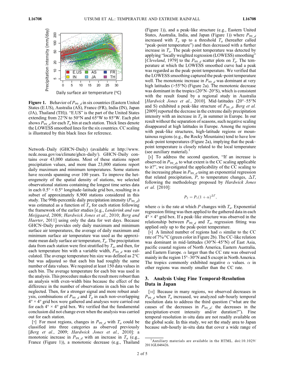 [8]为了解决第二个问题,“如果在P99_d中观察到增加,CC缩放适用于多大程度?我们使用Hardwick Jones提出的方法[2010],使用相关降水P对温度变化△T的指数回归,研究了CC缩放对P99_d增加阶段的适用性。