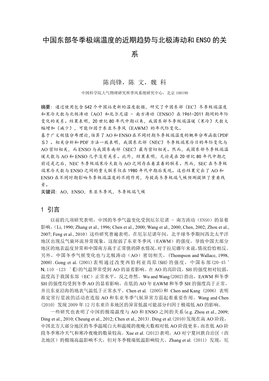 - 中国中东部地区冬季雾——霾日的年际变化及其与东亚冬季风的关系外文翻译资料