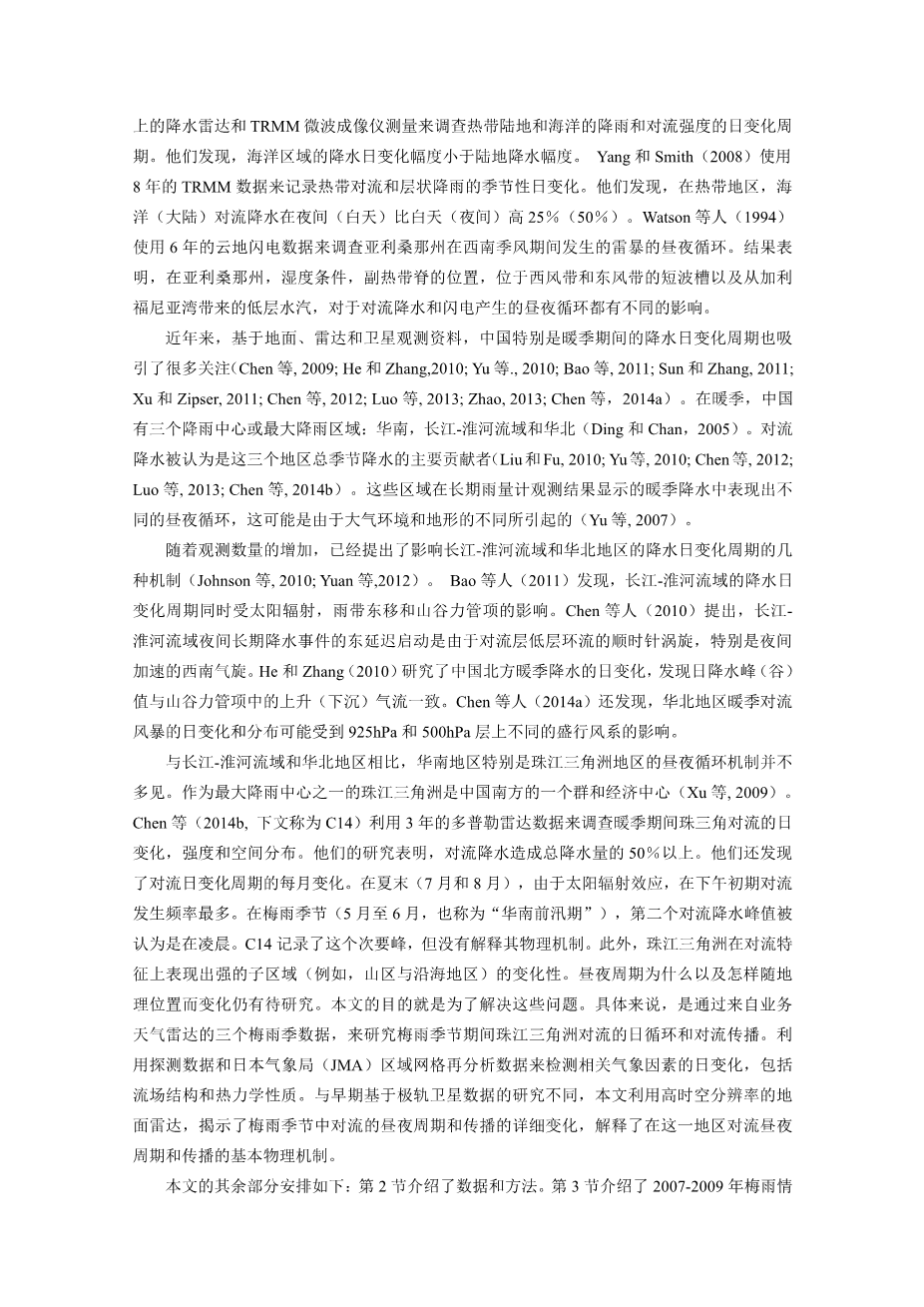 梅雨季节珠江三角洲对流的周期和传播的雷达观测分析外文翻译资料