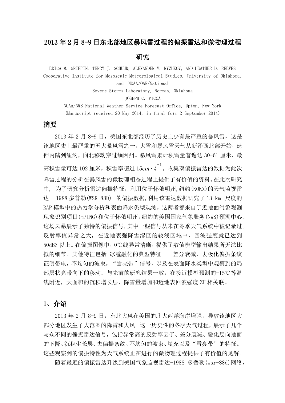 2013年2月8-9日东北部地区暴风雪过程的偏振雷达和微物理过程研究外文翻译资料