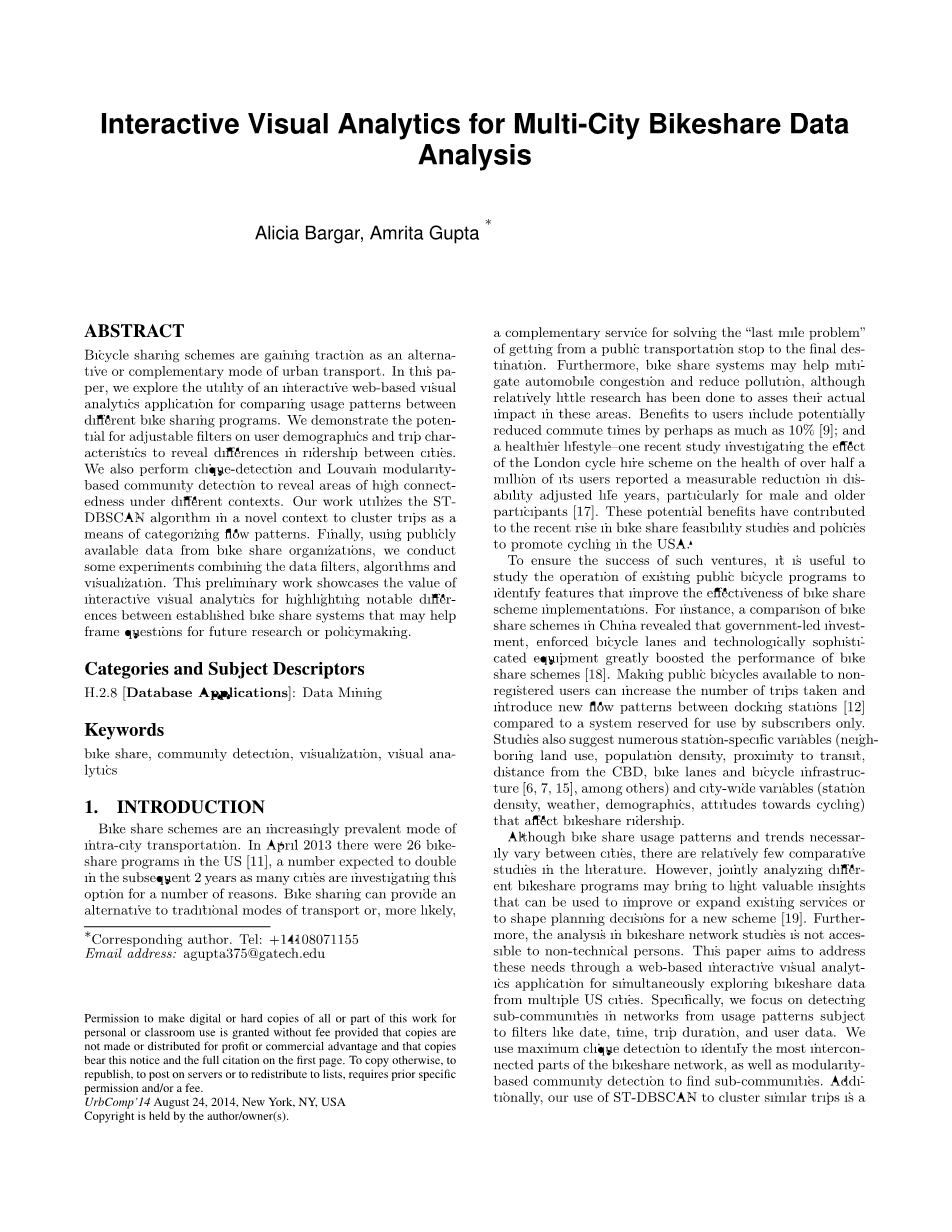 共享单车计划正在逐渐成为城市交通的替代或互补模式。在本文中,我们探讨了一个交互式基于Web的可视化分析应用程序用于比较两者之间的使用模式的效用。