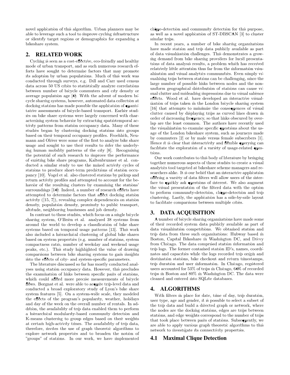 我们的工作通过带来这些文献,将这些研究的许多方面结合起来,创建针对自行车计划管理者和研究人员的可视化分析工具。我们相信,使用各种数据过滤器的交互式应用程序将促使界面用户快速提出感兴趣的问题。我们通过增加过滤数据的视觉呈现以及执行社区检测、集团检测和旅程聚类的选项。使得该应用程序具有并排布局以便于在多个城市之间进行比较。