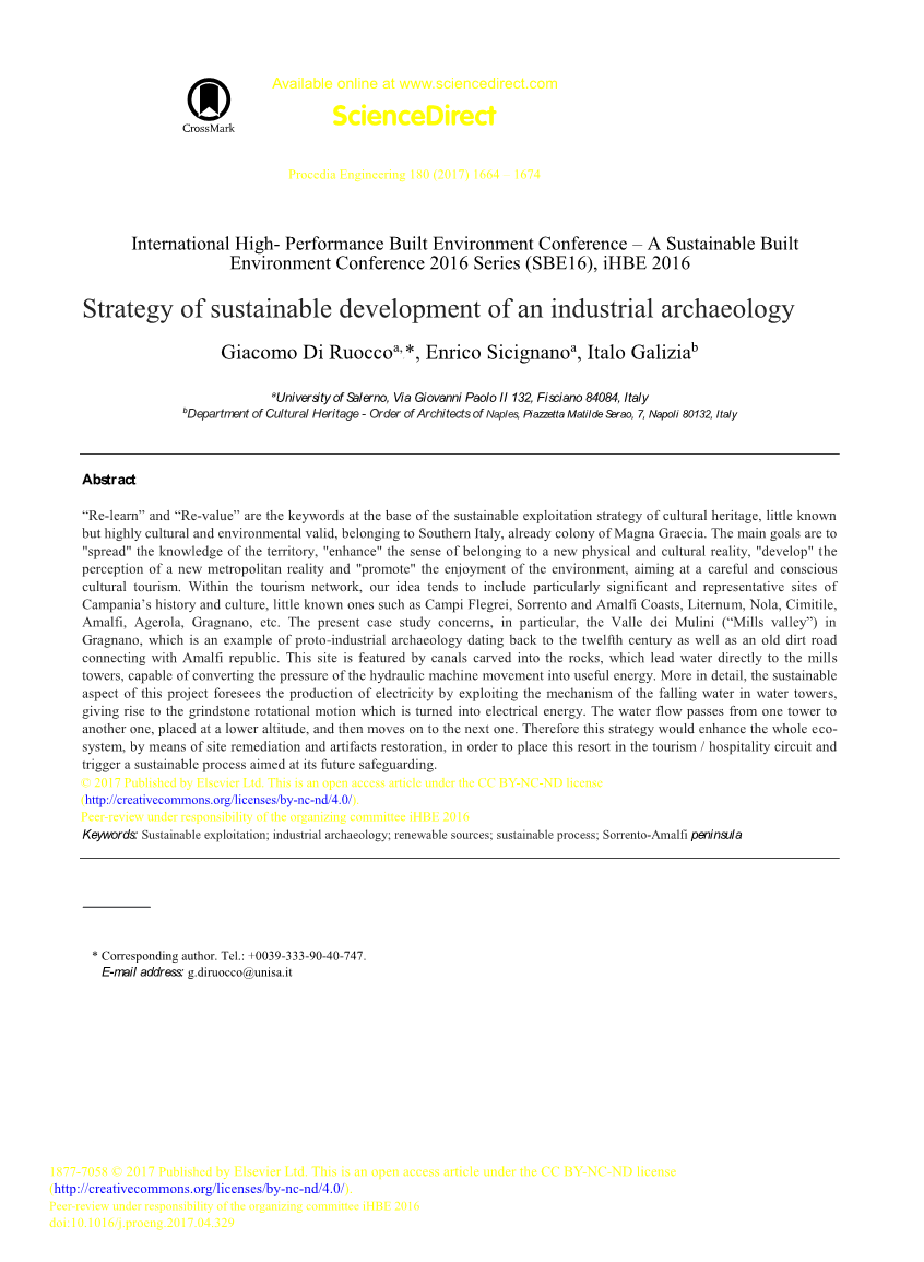 关键词:可持续开发; 工业考古学; 可再生资源; 可持续过程; 索伦托阿马尔菲半岛