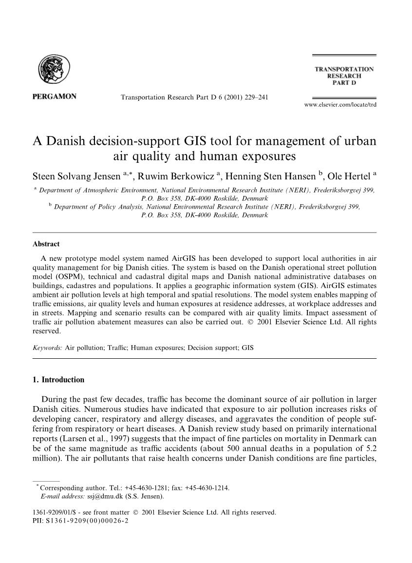 Keywovdr:空气污染;Tra@c;人类暴露;决策支持;地理信息系统