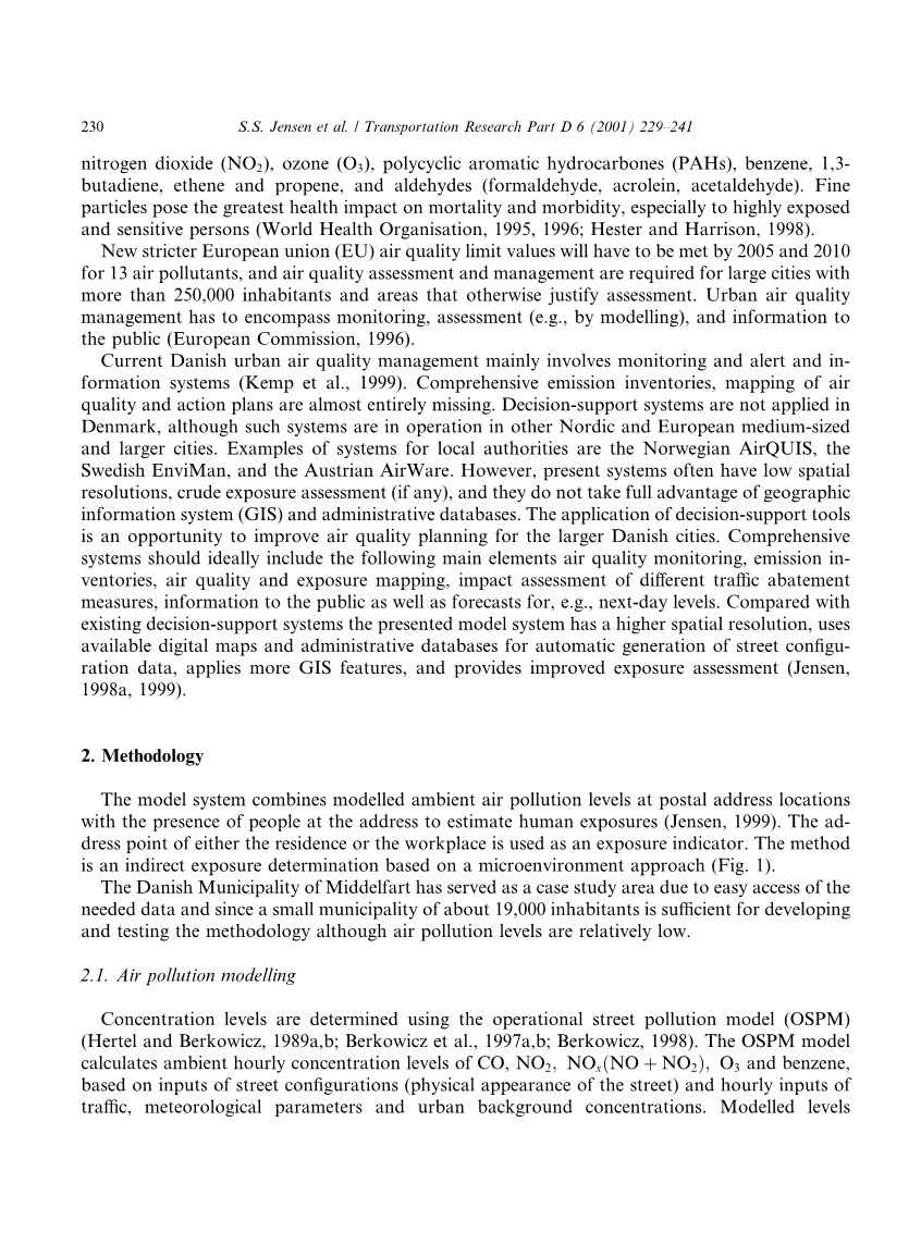浓度水平是由操作街道污染模型(OSPM)决定的(Hertel和Berkowicz, l989a,b;Berkowicz et al .,l997a,b;同年,Berkowicz)。OSPM模型计算了CO的环境小时浓度水平。2,没有x 不不2 阿,3 和苯,基于街道配置的输入(街道的物理外观)和每小时输入的tra@c,气象参数和城市背景浓度。