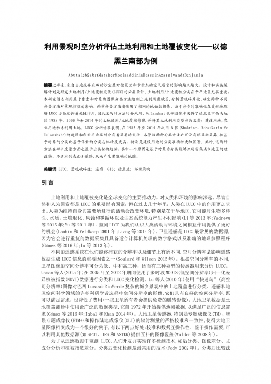 - 集成数据在城市土地利用变化时空动态监测的应用——以印度金奈都市为例外文翻译资料