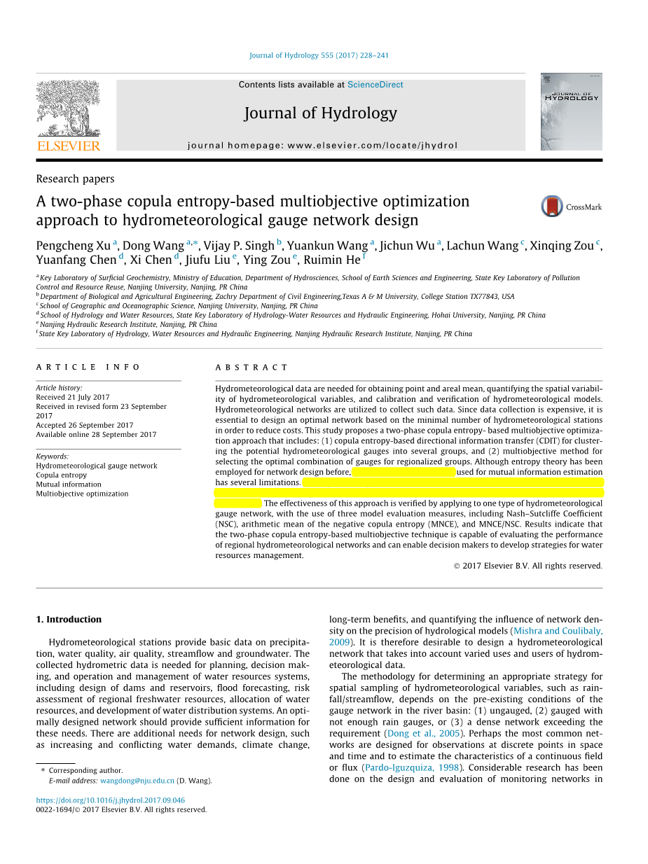 关键字:水文气象仪表网络、Copula熵、互信息、多目标优化。