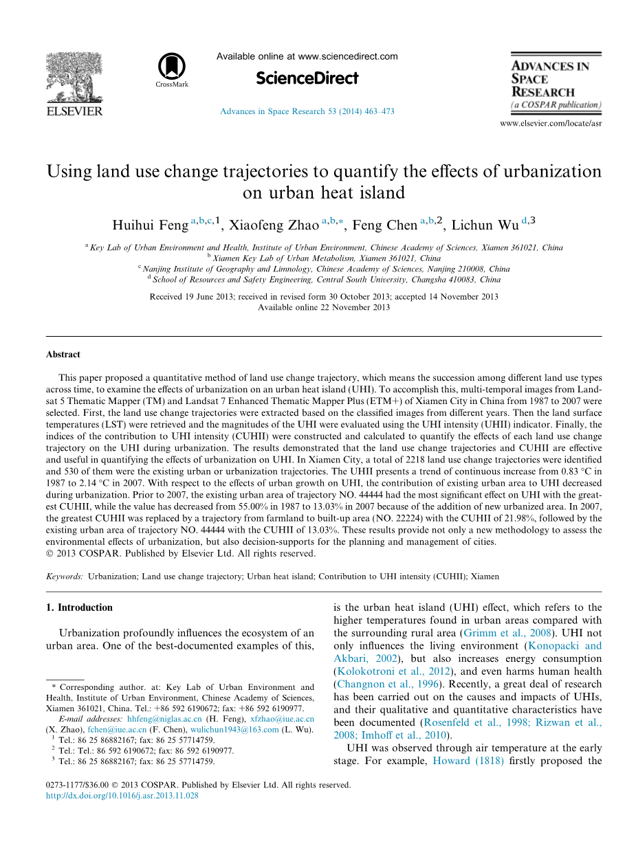 关键词:城市化;土地利用变化轨迹;城市热岛;城市热岛强度贡献度;厦门