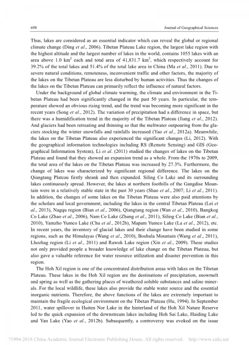 关键词 湖泊变化;时空特征;可可西里地区;青藏高原