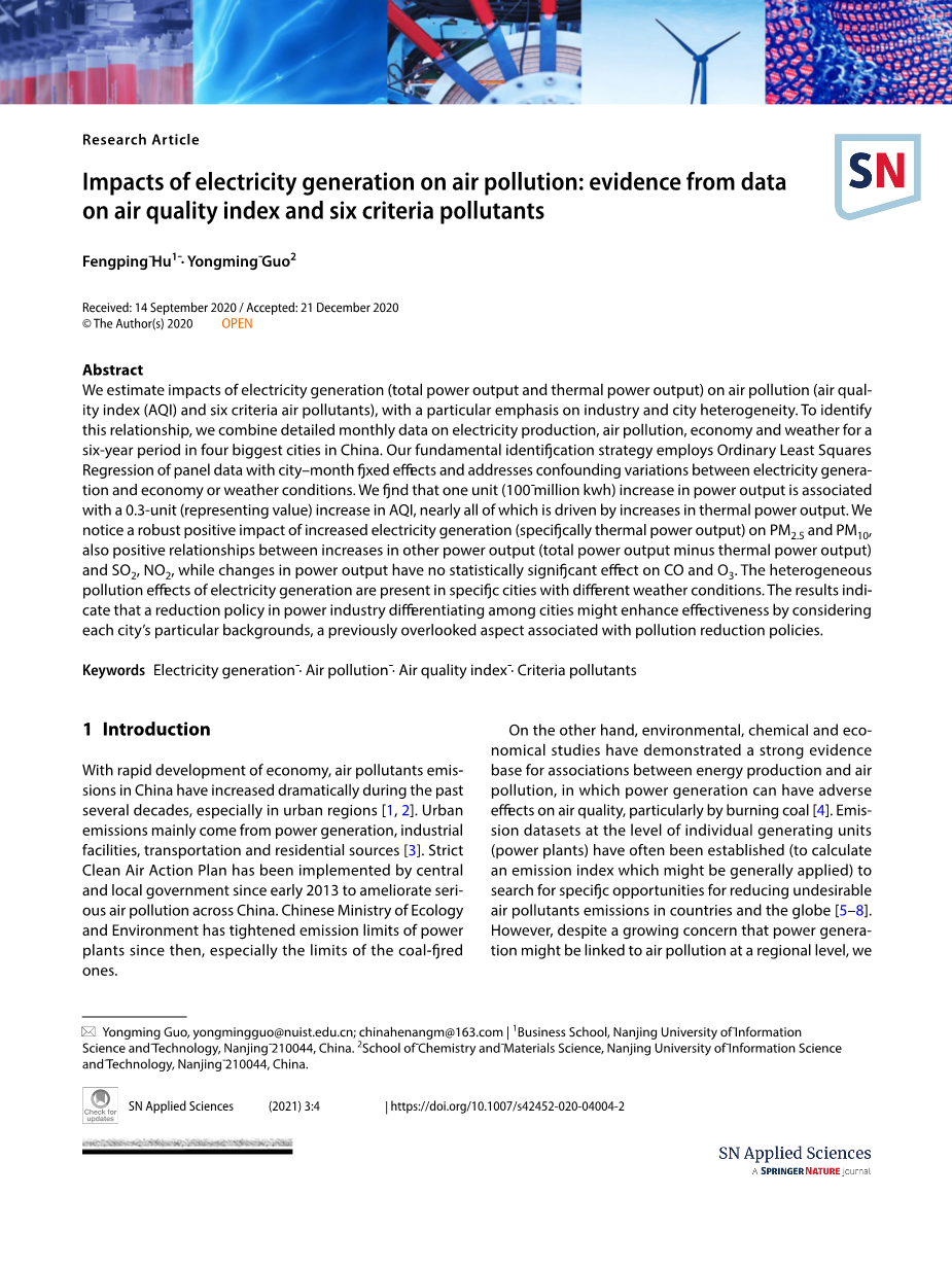 发电对空气污染的影响:来自空气质量指数和六项标准污染物数据的证据