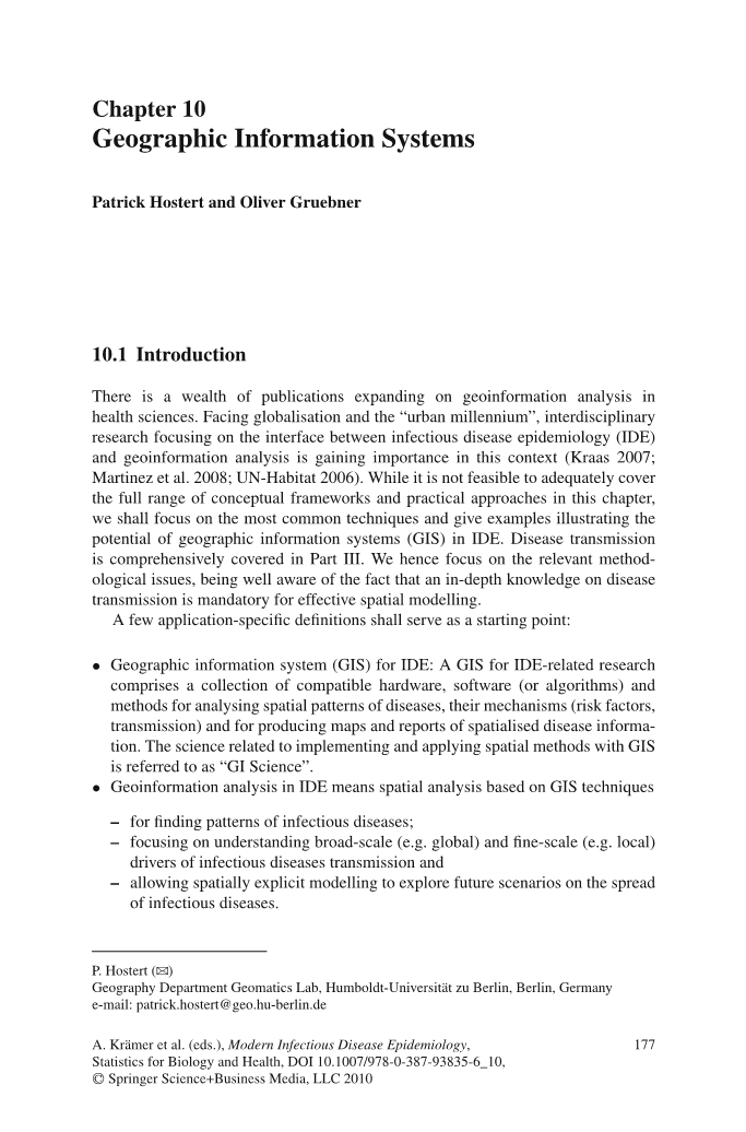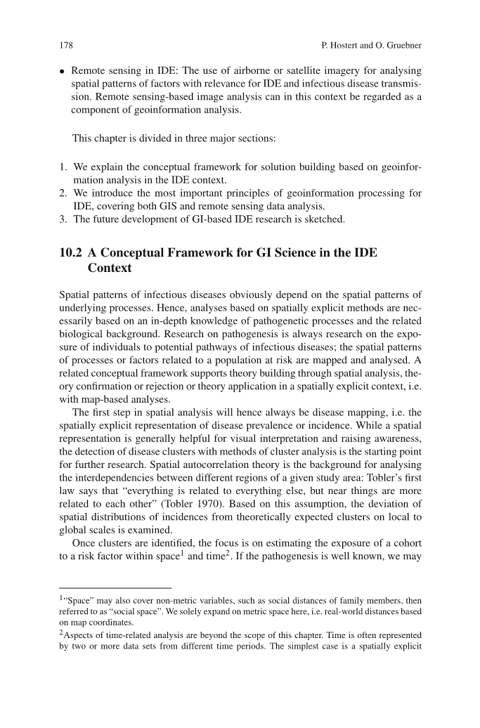 在了解病原体和传染病的病因学背景后,我们可以在不同的层面上进行空间模式分析:我们最初可能希望进一步探索传播途径的空间背景。检查传播途径包括不同的重点,如在媒介传播疾病的情况下对媒介或宿主生境的分析,在社会疾病的情况下对与生活或工作条件相关的社会或社会经济指标进行的分析(与第6章相比),或在环境疾病的情况下对潜在环境威胁分布的分析(例如具有高污染水平的水孔)。这些问题可以通过经验(基于地图操作)或建模(基于分析模型)来解决。