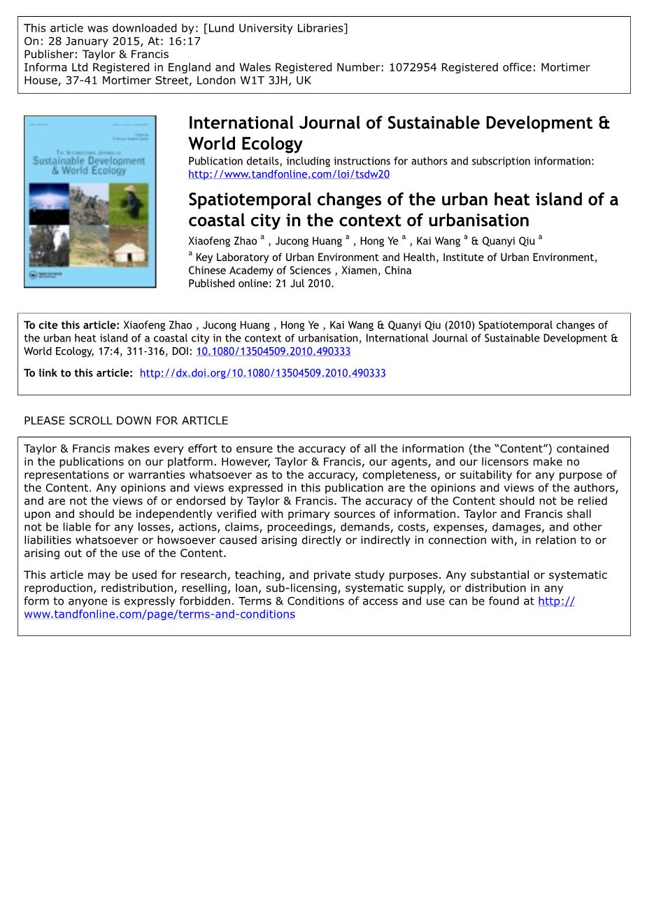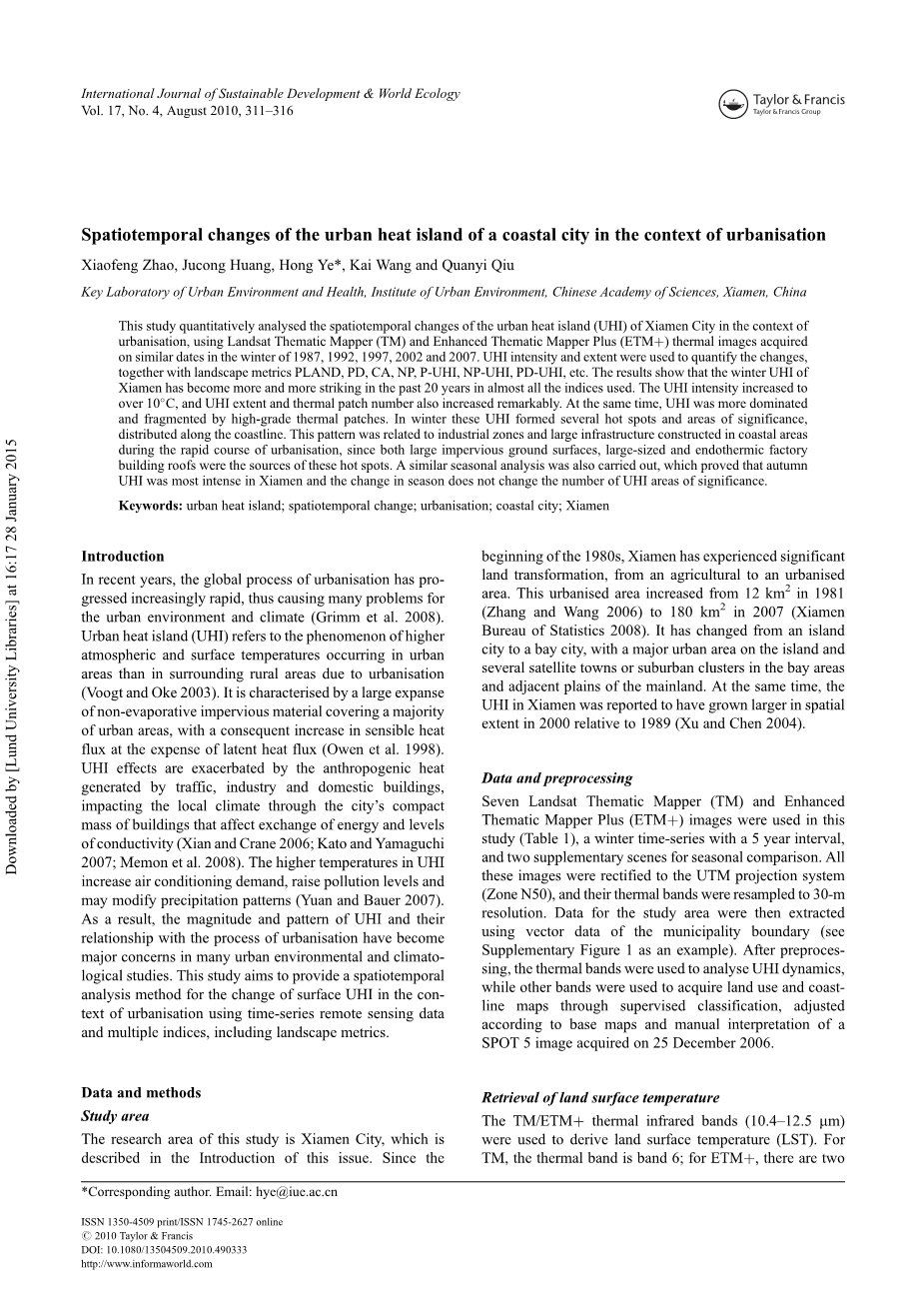 关键词:城市热岛;时空变化;城市化;沿海城市;厦门