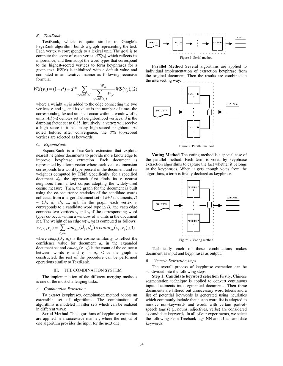 串行方法。关键字短语提取算法以连续的方式来作用,其中一种算法的输出为下一种算法提供输入。