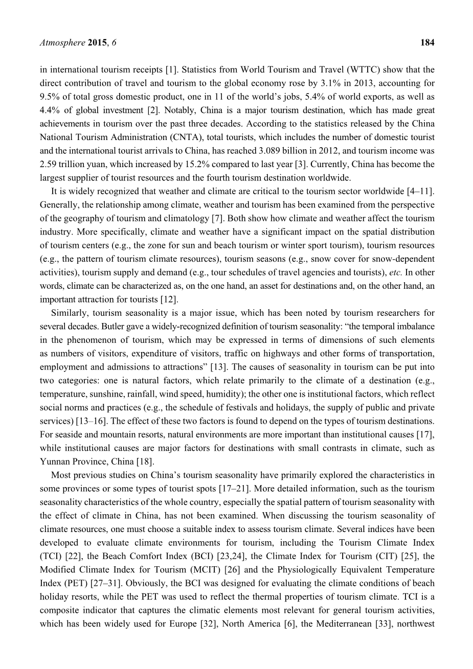 利用旅游气候指数对中国旅游业的季节性气候资源评估