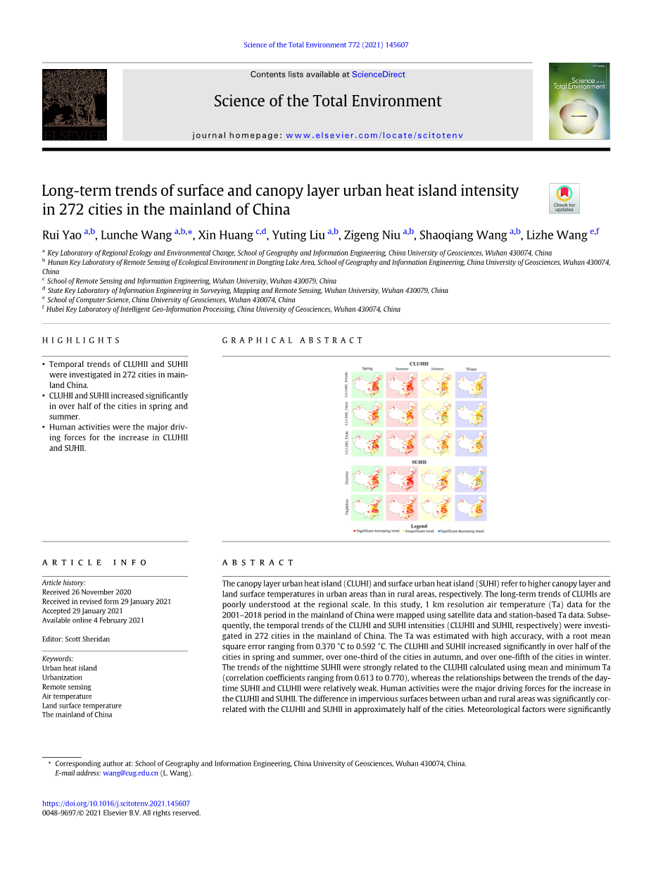 - 调查了中国大陆272个城市CLUHII和SUHII的时间趋势。