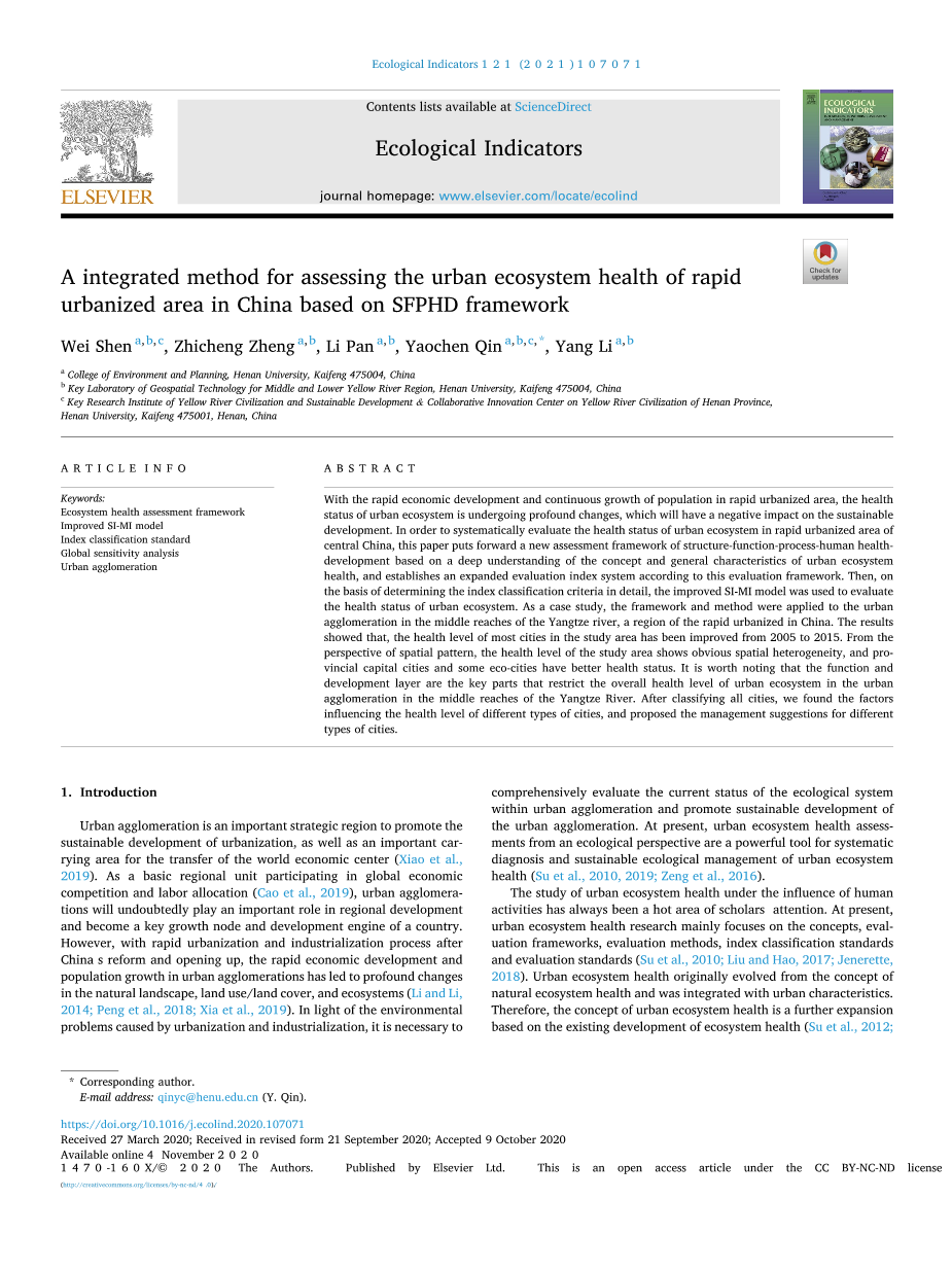 关键词:生态系统健康评价框架,改良的SI-MI模型,指标分类标准,全局灵敏度分析,城市群