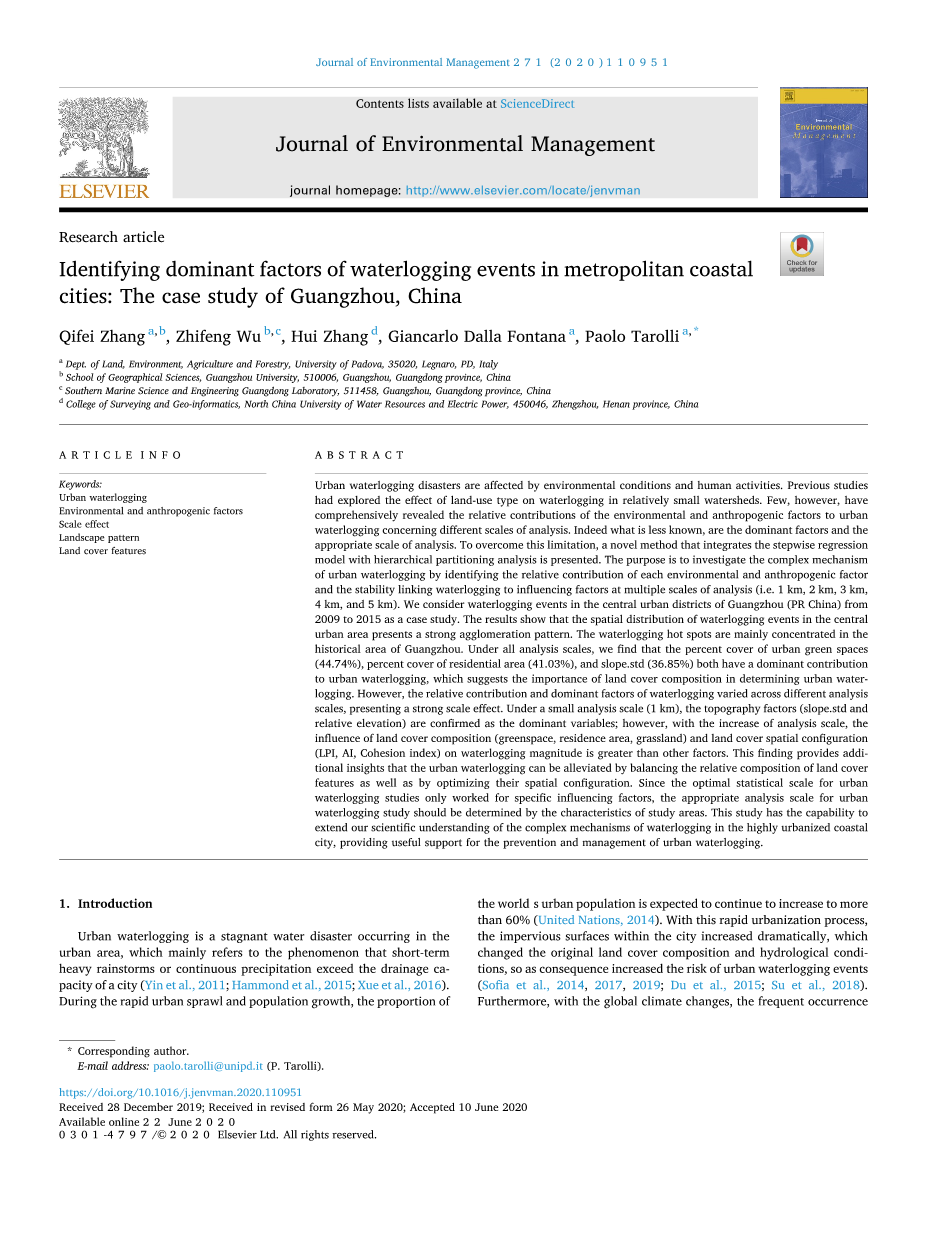 关键词:城市内涝,环境与人为因素,尺度效应,景观格局,土地覆盖特征