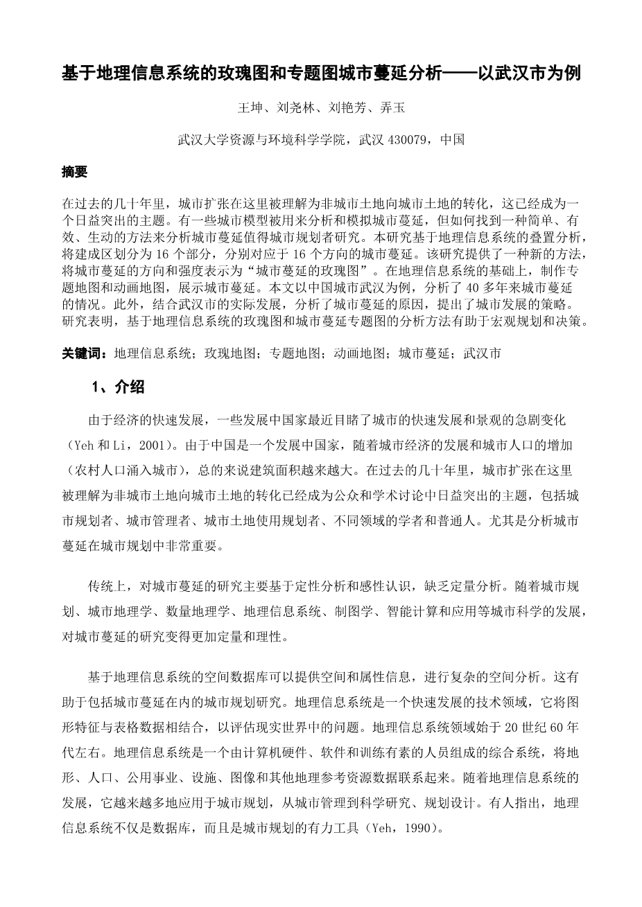 Keywords: GIS; rose map; thematic map; animated map; urban sprawl; Wuhan city