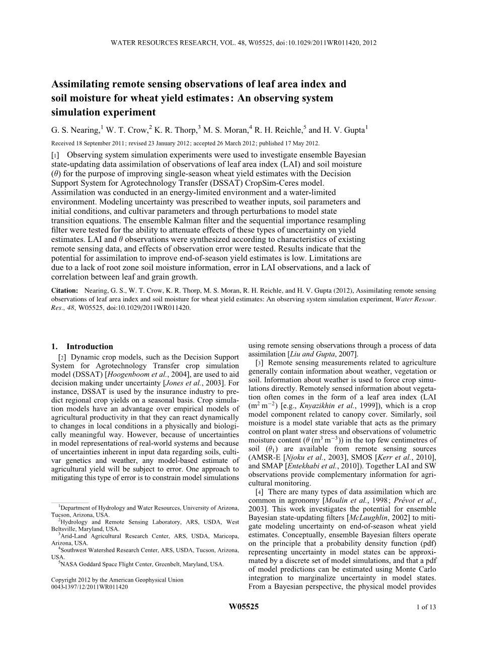 GS Nearing,1 WT Crow,2 KR Thorp,3 MS Moran,4 RH Reichle,5 和HV Gupta1