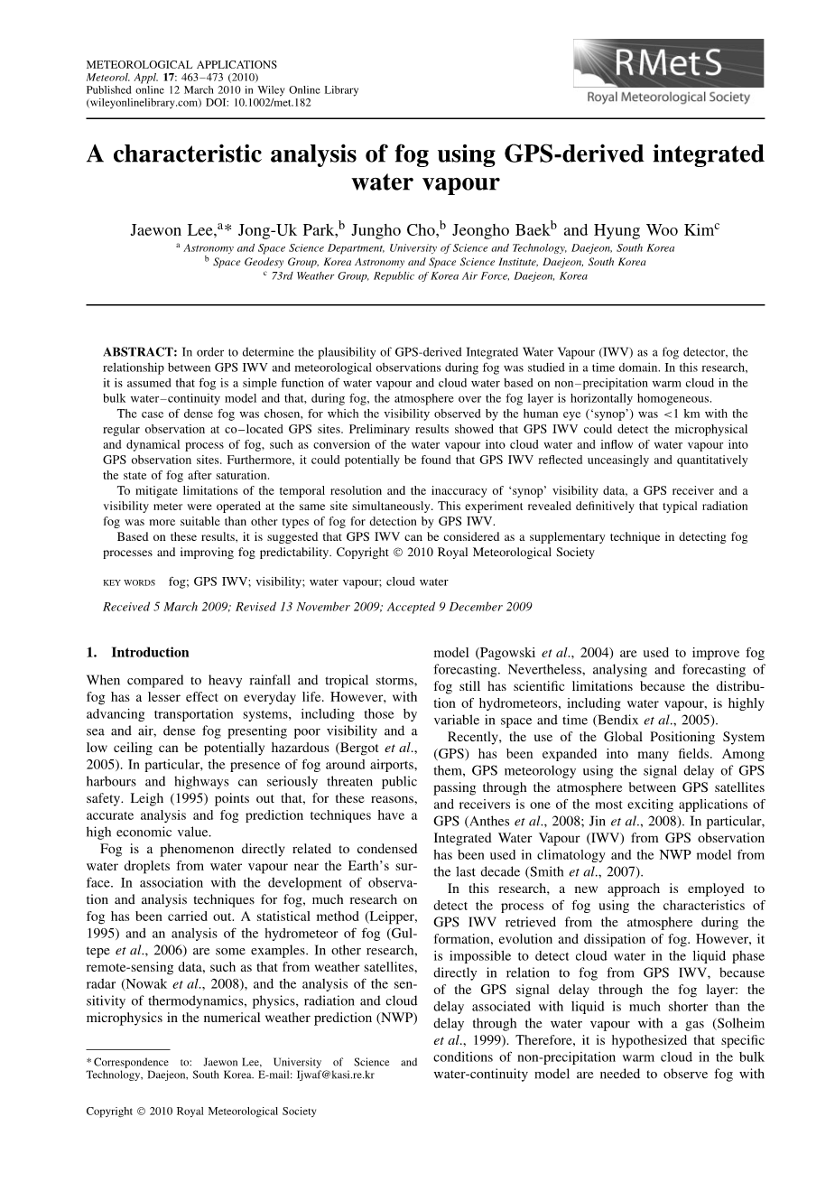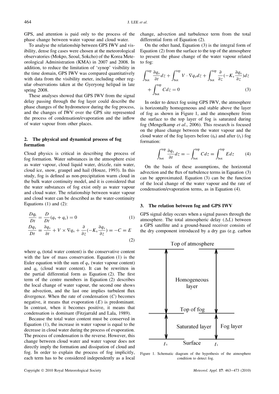 图1.检测雾的大气条件假设示意图。 图2.在韩国(首尔,束草,木浦)和鸡龙直升机停机坪提供定期观测数据的GPS站点的位置。