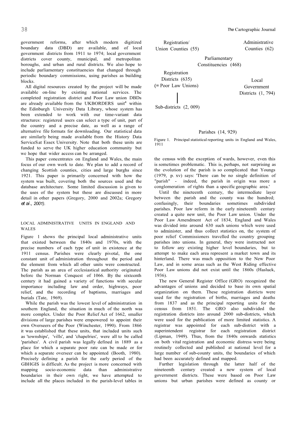 本文主要研究英格兰和威尔士,这是我们迄今为止工作的主要焦点。我们计划增加自1921年以来苏格兰各县、城市和大型城市发生变化的记录。本文主要讨论如何构建系统,包括使用的源代码和数据库体系结构。对系统的使用进行了一些有限的讨论,但在其他论文(Gregory,2000和2002a;Gregory等人,2001)中对这些进行了更详细的讨论。