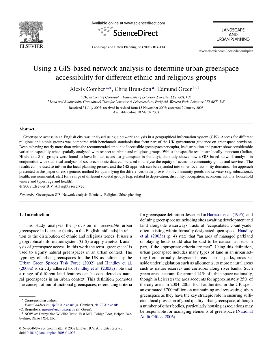 Alexis Comber a,, Chris Brunsdon a, Edmund Green b,1