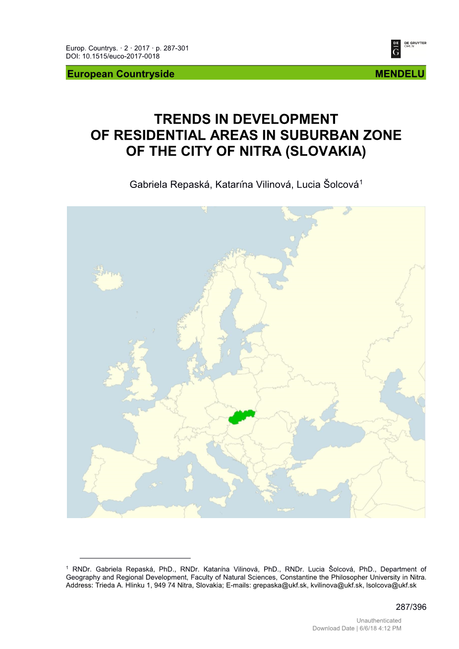 这篇论文的目的是描绘尼特拉市郊区住宅建设郊区发展的趋势。 评估包括2015年定义的尼特拉市郊区的14个城市。研究区住宅建设的监测基于: