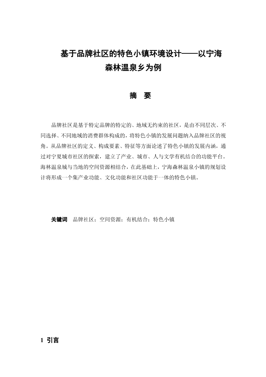 Characteristic Town Environment Design Based on Brand Community———A Case Study of the Forest Hot Spring Township in Ninghai