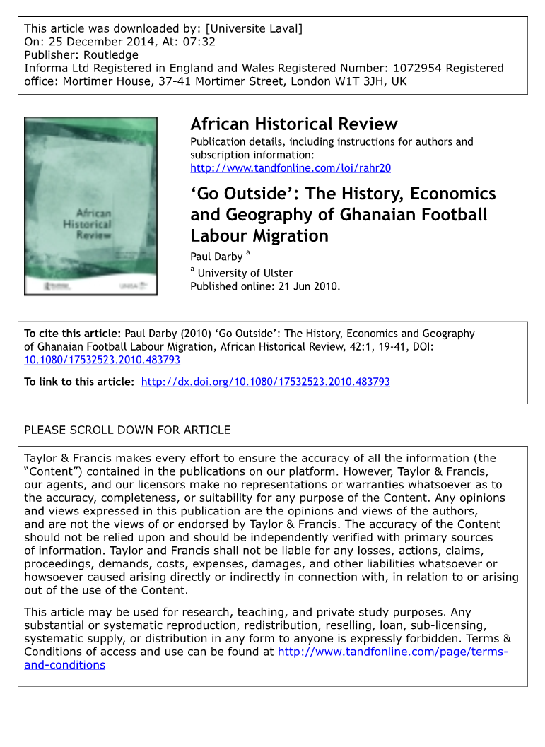 “走出去”:加纳足球劳务移民的历史,经济和地理特征