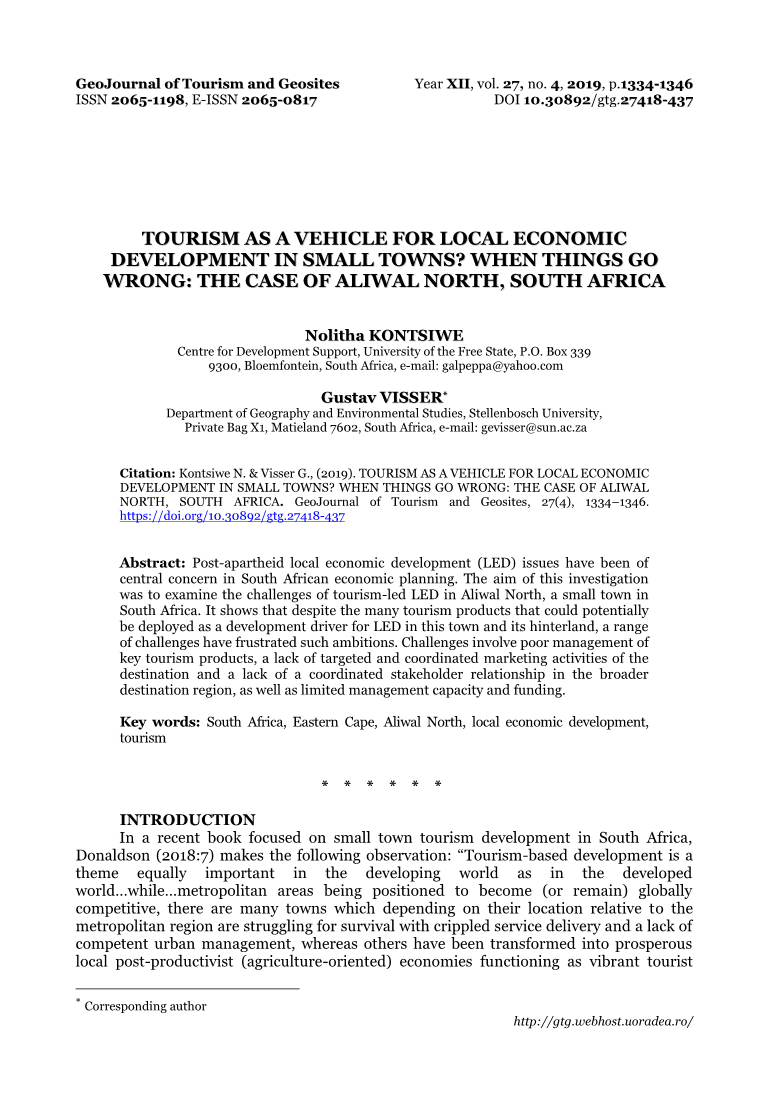 引用:Kontsiwe N. amp; Visser G.,(2019)。旅游业作为小城镇地方经济发展的载体?当事情出错时:以南非北阿利沃为例。旅游地理杂志,27(4),1334-1346。