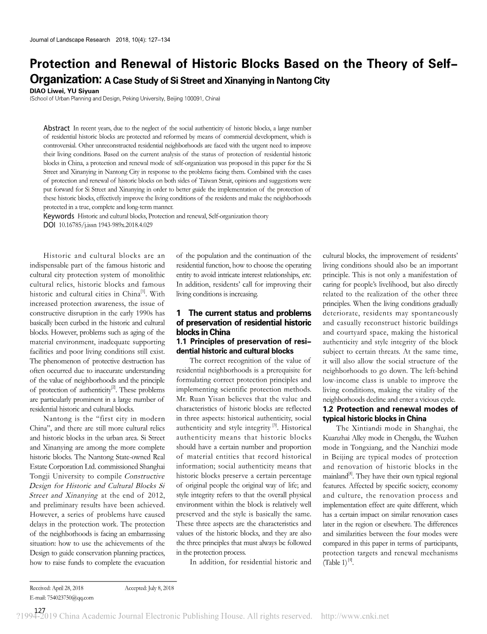 摘要:近年来,由于忽视了历史街区的社会真实性,大量的住宅历史街区受到商业发展的保护和改造,引起了争议。其他未重建的住宅区面临着改善其生活条件的迫切需要。本文在分析了我国历史街区保护现状的基础上,针对南通市寺街、西南营小区面临的问题,提出了自组织理论下的保护与更新模式。结合海峡两岸历史街区的保护和更新案例,对寺街、西南营等历史街区的保护工作提出了意见和建议,以更好地指导这些历史街区保护工作的实施,有效改善居民的生活条件,使社区得到真正、完整和长期的保护。